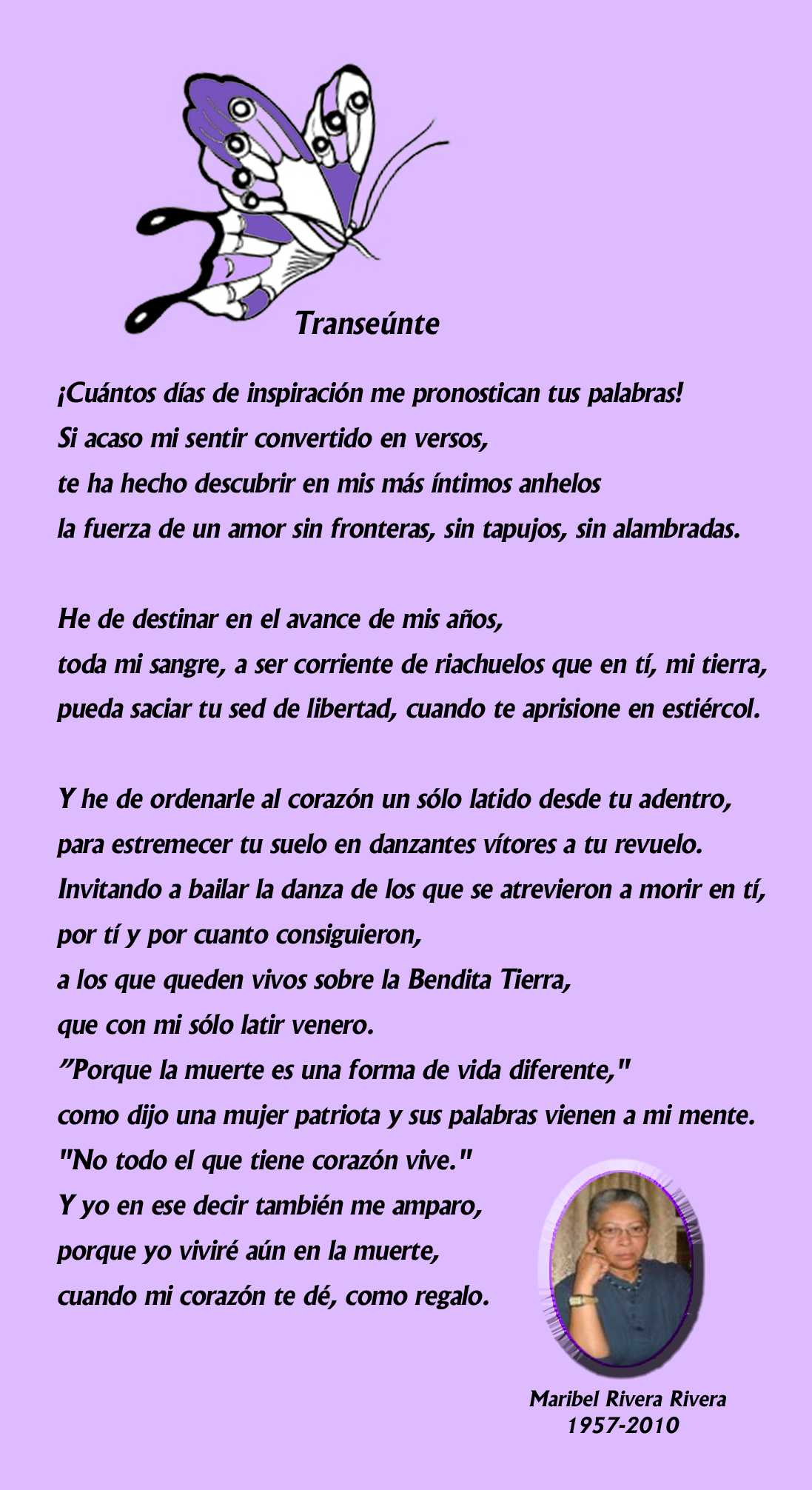 “Deja Maribel… deja atrás ese cuerpo metastásico y ve a morar a los prados de la vida eterna. Y ten la certeza de que se vive aún en la muerte. Verás que sí, porque tu corazón, ya lo diste como regalo.”