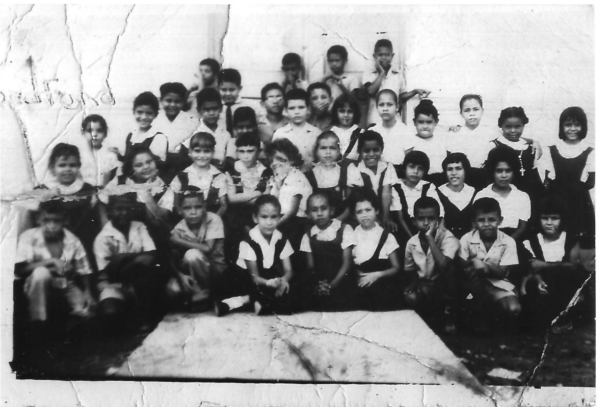 Esta foto recoge un momento de la historia de la educación en Salinas y las caritas infantiles de un grupo de niños de 1961.