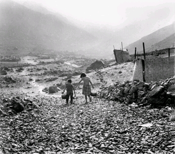A lo lejos los niños, ahora contentos, seguían cargando agua hacia sus chozas, en Villa El Salvador.
