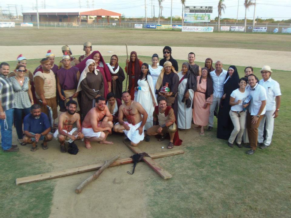 La recreación de la pasión y muerte de Jesús de Nazaret tradicionalmente acompaña el recorrido de la Procesión de Viernes Santo. Este año, el Sr. Fernando Alvarado le encomendó al actor Cedric Sáez, la dirección de la dramatización de los acontecimientos bíblicos que rodearon la crucifixión. En las fotos aparece el elenco que escenificó la representación artística en la Parroquia La Monserrate de Salinas.