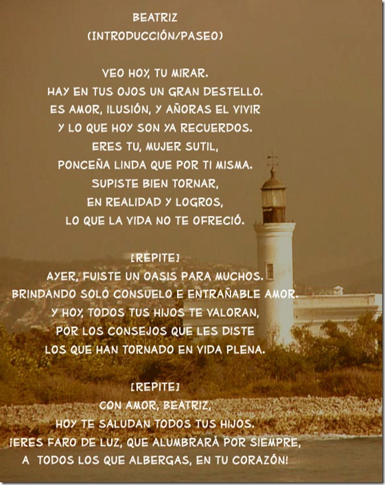 La danza que presentamos está inspirada en Beatriz Martell, madre de Helvetia Martell, esposa del autor.