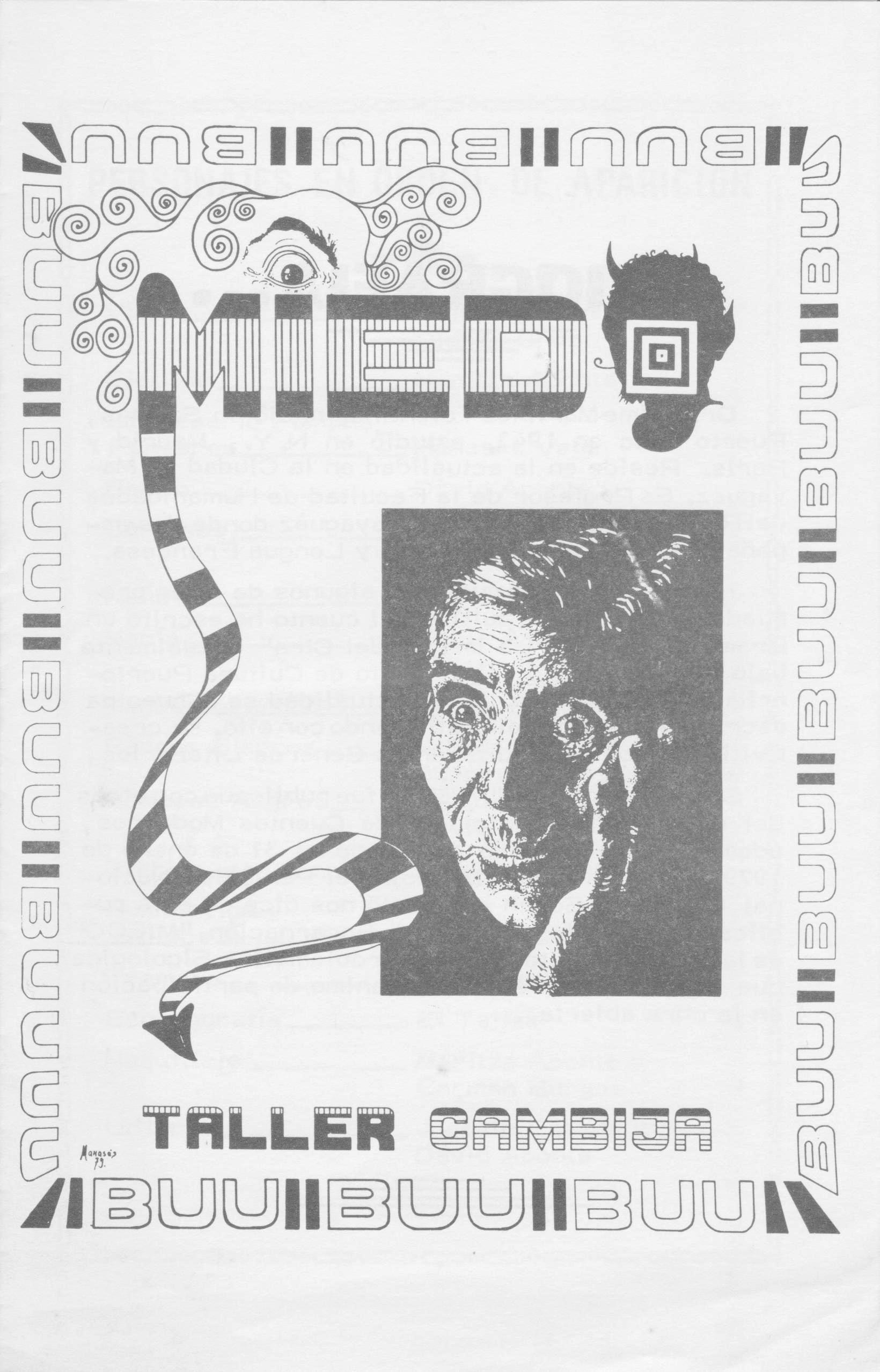 La información plasmada en esta hoja suelta nos cuenta dos hechos significativos: la existencia de un taller de teatro experimental denominado Cambija y la adaptación para teatro del cuento Miedo del escritor nacido en Salinas, Jaime Martínez Tolentino.