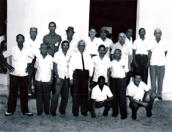 Publicamos la foto con la intención de que los espectadores ayuden a describirla, a identificar las personas y a comentar lo que sepan en torno a ellas. Asimismo, donde y cuando se tomó la foto. La base para esa identificación son los nombres de Julio Famanía, Pedro Espada, Mister Colón y Arcilio Bahamonte. Es sencillo: indique la fila y la posición de izquierda a derecha que ocupa la persona en la foto.